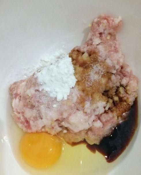 1. 将猪肉切成小块,放入绞肉机中绞成肉馅。