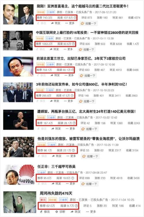 根据2023年的数据,我们可以看到,一些知名博主如“罗辑思维”、“咪蒙”等,他们的粉丝数量已经突破了千万大关。这些创作者凭借独特的风格和内容,吸引了大量粉丝,从而在头条上赚得盆满钵满。