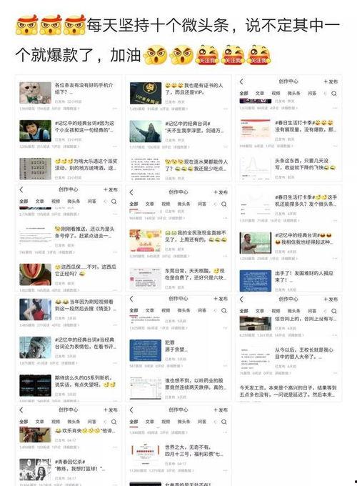 你知道吗?在咱们这个信息爆炸的时代,每天有无数的人像勤劳的小蜜蜂一样,在互联网的花园里穿梭,他们就是那些每天发微头条的人。他们用文字编织着生活的点点滴滴,分享着自己的喜怒哀乐。今天,就让我带你一起走进这个有趣的群体,看看他们是如何在微头条的世界里,留下自己的足迹的。